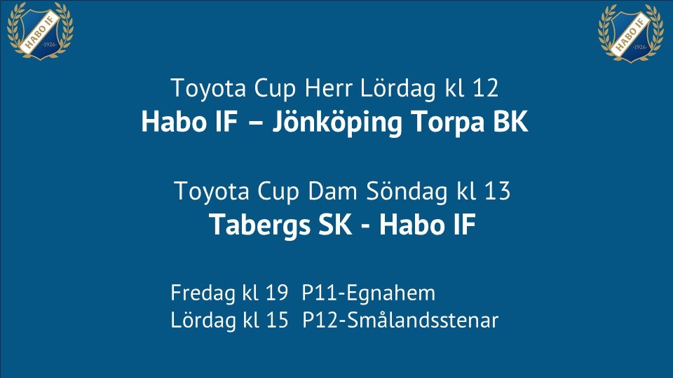 Kommande helg är det dags för Cupmatch för både Herr och Dam. Herrarna spelar hemma när Jönköping Torpa BK kommer till Slätten på lördag. JTBK är nya i div 4 och kommer inte spela i vår serie. Det är ett lag som satsar hårt så det blir en tuff match att vänta. De besegrade Råslätt i sin första cupmatch med 4-2. För vår del föll vi mot div 3 laget IF Haga med samma siffror. En bra insats där vi ledde med 2-0 som sedan blev förlust med 4-2. Välkomna på lördag kl 12. Damerna spelar sin första cupmatch på söndag. Det är bortamatch som gäller mot Tabergs SK. Matchen spelas på Jordbrovallen. Den gångna helgen vässade damlaget formen när man besegrade IFK Hjo med 6-0. Så en söndagstur till Jönköping och stötta damerna är perfekt. Matchstart kl 13. Det spelas även ungdomsmatcher i helgen när både P11 och P12 har matcher. Fredag möter P11 Egnahem och lördag kommer Smålandsstenar till Hbao och möter P12. Välkomna Habo IF 4 mar 0kommentarer