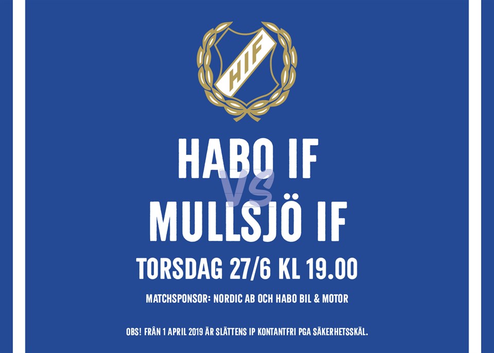 På torsdag är det dags för derby. Denna gången på hemmaplan då Mullsjö IF gästar Slätten. Vi kommer till spel efter förlusten i tolfte omgången med 1-0 borta mot Mullsjö. Nu hoppas vi på en bra avslutning på våren. Mullsjö spelar sin match i omgång tolv först på tisdagskvällen, så det är ett tätt matchande inför uppehållet. Vi hoppas att det kommer mycket supporters och stöttar vårt blå-vita lag. Torsdag kl 19 är det avspark. Missa inte att Habo Honda Cup drar igång nu till helgen med avspark kl 8 på lördag.