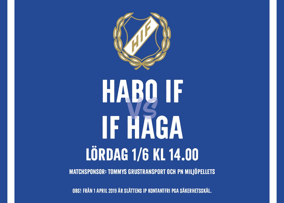Matcher med derbykaraktär avlöser varandra, det är dags igen. nu på hemmaplan och för motståndet den här gången står IF Haga. För våran del som kommer vi till spel efter seger senast i derbyt mot Bankeryd med 1-2. Det gör att vi har 2 raka poängmatcher på bortaplan.När det nu är dags för nytt derby så hoppas vi att publiken hittar till Slätten trots långhelg. Motståndarkollen IF Haga: Haga föll överaskande senast i derbyt mot Hallby och tappade i toppstriden. Haga som förra året spelade i div 3 har som mål att kliva upp igen. I Hagas trupp finns Habobekantingen Uros Hojan, om han finns med på lördag återstår att se. Historia: Senast lagen möttes i seriesammanhang var 2016 då i div 4 elit. Båda matcherna den säsongen slutade med kryss, 2-2 i Habo och 1-1 borta. En säsong där vi slutade 2:a och klev upp i div 3. Notera att tränare Sunnåker gjorde ett av målen på hemmaplan och Hojan var lagkapten i den blå-vita tröjan. I dagens trupp så finns 6 spelare kvar sedan dess Hagel, Bys, Ando, Simon, Fabian och Jonte. Vi ses på lördag med avspark kl 14
