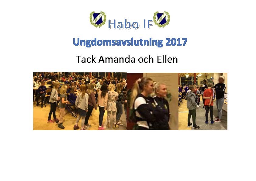 Många lag har haft avslutningar i de egna lag, nu är det dags för Habo IFs ungdomsavslutning 2017. Söndag 5 november i Blå Salen. I år så kör vi det uppdelat med de yngsta först och efter det seriespelande lag. Kl 16,30 för lagen födda -08, ,-09, -10, -11 Kl 17,15 för seriespelande lag. På programmet medalj/prisutdelning, Gäst och annat trevligt Välkomna