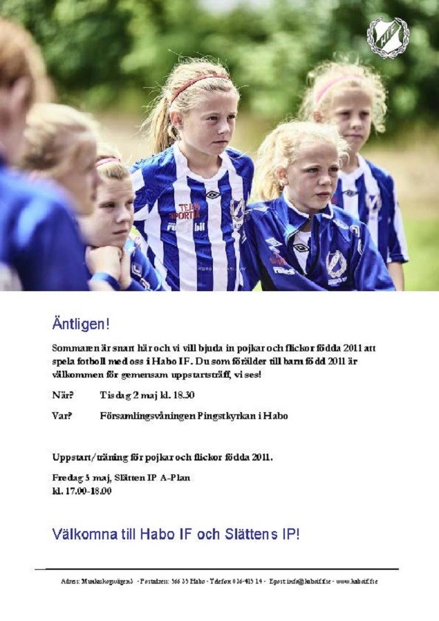 Idag tisdag har det varit möte för de som är födda 2011. Första träningen för både killar och tjejer är nu på fredag. Båda grupperna tränar på A-plan kl 17-18. Välkomna.