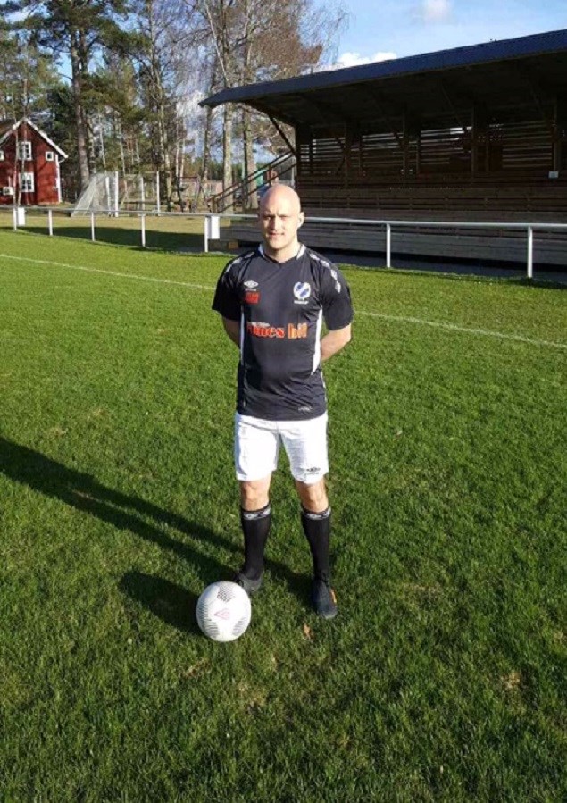 Kim Byström står modell för herrarnas nya reservställ. Habo som tidigare spelat i rött reservställ kommer numera spela när så behövs i svart tröja, vita byxor och svarta strumpor. Snyggt!!