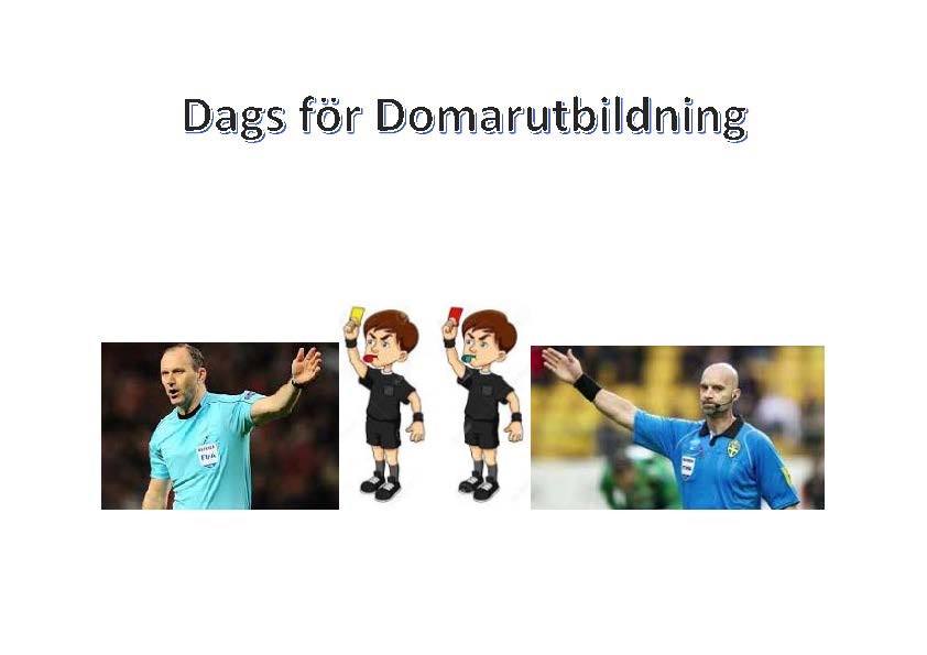 Grundkurs ungdomsdomare 5-7-manna Onsdagen den 14 mars 18.00- 21.00 Slättens IP, Habo Deltagare som bjuds in P/F - 04 och äldre Utbildningen vänder sig till domare som ska döma ungdomsfotboll 5- och 7-manna, t.o.m. 12 år, och inte tidigare gått någon kurs. Inget krav på förkunskap. Ger deltagarna legitimation att döma ungdomsfotboll 2017. Max 25 deltagare Anmälan till agnetaaasa@gmail.com alt 0706-49 15 27 senast 9 mars ________________________________________ Fortbildning ungdomsdomare Onsdagen den 15 mars 18.00–21.00 Slättens IP Utbildningen vänder sig till domare som ska fortsätta döma ungdomsfotboll 5-, 7-, 9- och 11-manna, t.o.m.15 år. Krav på förkunskap är godkänt i någon av grundkurserna samt att domaren dömt tidigare. Ger deltagarna förnyad legitimation att döma ungdomsfotboll 2017. Anmälan till agnetaaasa@gmail.com alt 0706-49 15 27 senast 9 mars ________________________________________