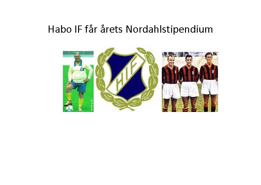 Det är med stor glädje och stolthet vi kan meddela att vi som förening tilldelas ett av de mest ärofyllda priser som delas ut. Stipendium ur Gunnar Nordahls minnesfond. Gunnar Nordahl är en legend inom svensk fotboll. Gunnar tillsammans med Gunnar Gren och Nils Liedholm bildade under 50-talet den berömda formationen Gre-No-Li. Följande pressmeddelande har idag gått ut via Svenska Fotbollsförbundet: Stiftelsen för Gunnar Nordahls Minnesfond har utsett Smålandsföreningen Habo IF till mottagare av Gunnar Nordahl-stipendiet för år 2016, detta tack vare dess gedigna arbete med fotbollsturneringen Habo Cup. – Habo IF har på ett imponerande sätt visat att det med engagerade och målinriktade ledare går att skapa, och år efter år utveckla, en barn- och ungdomsverksamhet, som är ett föredöme för fotbollsklubbar i Sverige. Föreningen är därför väl förtjänt av att utses till årets Nordahlstipendiat, säger stiftelsens ordförande Krister Malmsten. – Vi är stolta och hedrade över att motta stipendiet ur Gunnar Nordahls Minnesfond och ser det som ett bevis på att vi jobbar i rätt riktning, säger Lars Nordgren, ansvarig för Habo Cup i föreningen. Föreningen startade år 2012 fotbollsturneringen Habo Cup, som riktar sig till pojkar och flickor i åldern 10-12 år. Efter fem år har turneringen lyckats öka antalet deltagande lag från 22 (2012) till 113 (2016). Detta har skett genom ett outtröttligt arbete från föreningens medlemmar, från styrelse till gräsrot. Med arrangemanget har föreningen därutöver åstadkommit ett mycket gott samarbete mellan förening, kommun och det lokala näringslivet. Habo Cup har blivit ett naturligt inslag efter midsommarhelgen i många gästande lags verksamhet, oavsett deras utvecklingsnivå. Många matcher och glädje är turneringens ledord! Gunnar Nordahl-stipendiet som är på 20 000 kr kommer att utdelas till Habo IF i samband med Fotbollsgalan i Stockholm den 21 november. I Stiftelsen Gunnar Nordahls Minnesfond sitter Gunnars son Thomas Nordahl, Björn Ahlberg, och som ordförande Krister Malmsten, Svenska Fotbollförbundet. Vill du läsa Habo IFs ansökan kan du göra det här.
