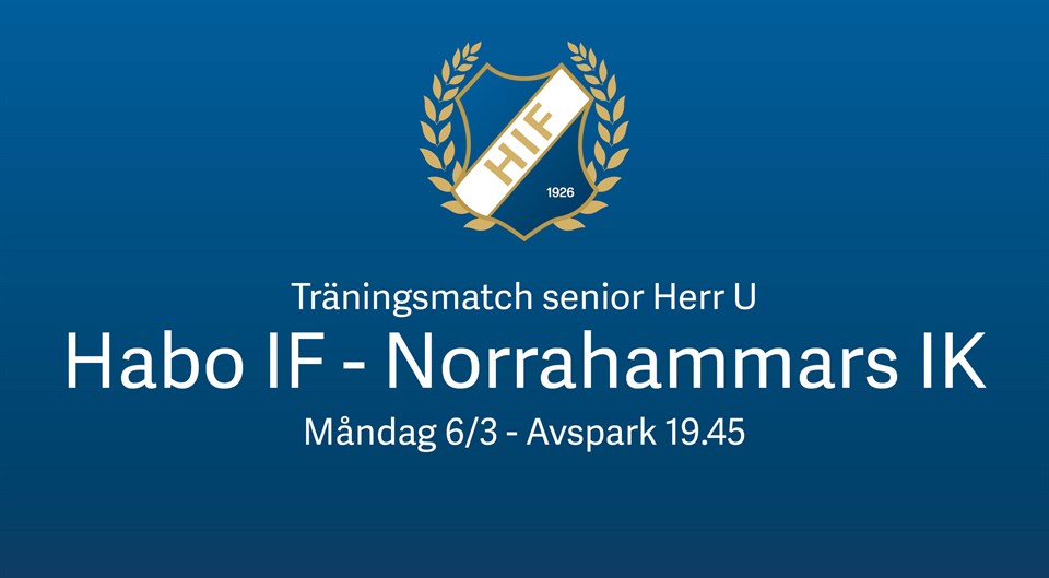 Vi har valt att spela mycket matcher på försäsongen. Nu är det dags för U-lagsmatch. Gästar gör Norrahammars IK. Så passa på att kolla fotboll en måndagskväll. Måndag kl 19,45 Habo IF - Norrahammars IK Välkomna
