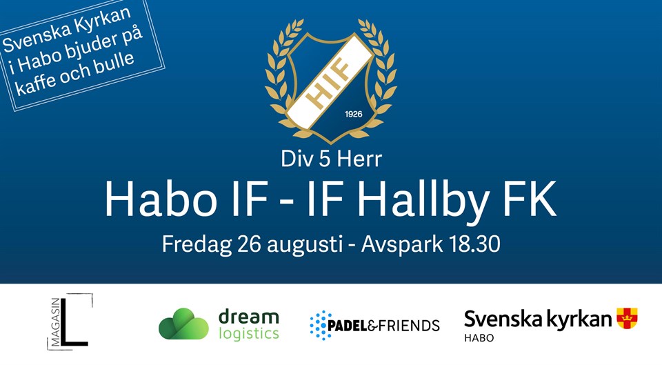 Det är dags för toppmatch för herrarna när IF Hallby gästar oss på Slätten. Med nuvarande tabell så är det en riktig 6p match. Vårens match slutade 2-2. Dagens matchvärd är Svenska Kyrkan. De finns på plats och bjuder på Kaffe och Kaka. Vi hoppas på mycket folk på läktaren. Notera den något tidiga avsparkstiden. Fredag kl 18,30 Habo IF - IF Hallby Välkomna Habo IF 25 aug 2022 0kommentarer