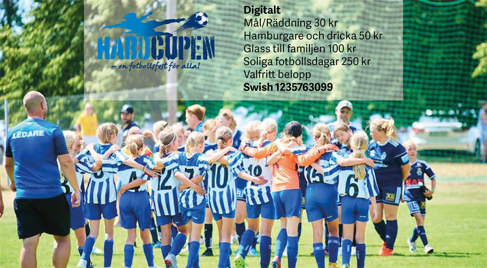 Nionde året får vi hålla oss tillgodo med en digital upplaga och minnas tillbaka till förra året. Nästa år planerar vi för 10 års jubileum. Vi hoppas att ni vill vara med och stödja Habocupen 2020. Måål! Vilken räddning! WOW! Det är saker vi missar på årets cup, vi får istället hålla tillgodo med härliga bilder. Här hittar ni härliga bilder från cupen 2019. Under cupdagarna grillas det, vi får se en massa mål och härliga räddningar. Du kan nu stödja vår digitala cup: Mål/Räddning 30 kr Hamburgare och dricka 50 kr Glass till familjen 100 kr Soliga fotbollsdagar 250 kr Valfritt belopp Du kan stödja oss genom att swisha: 1235763099 Märk swishen med Habocupen och delta i utlottning av fina priser. Cupen pågår till 31 juli. Tack för ditt stöd, nu laddar vi för 10 års jubileum. Vi syns nästa år. Habo IF Habo IF 2 jun 2020 0kommentarer